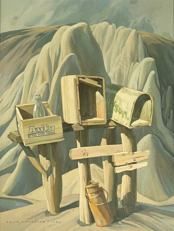 Colin Wheeler - Mailboxes, 1991, oil, 780x585mm