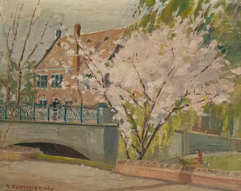 Annie Elizabeth Kelly - Springtime in Christchurch, oil, 390x500mm