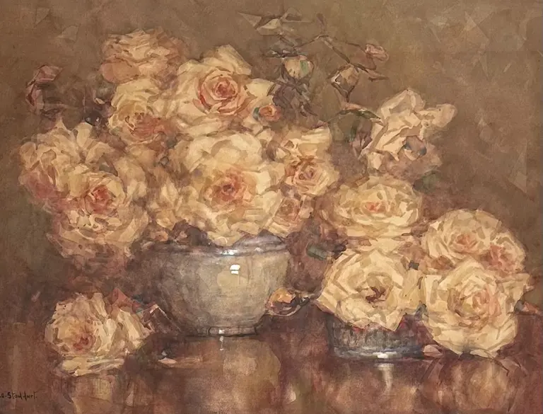 M O Stoddart - Anna Olivier Roses, watercolour, 450x590mm