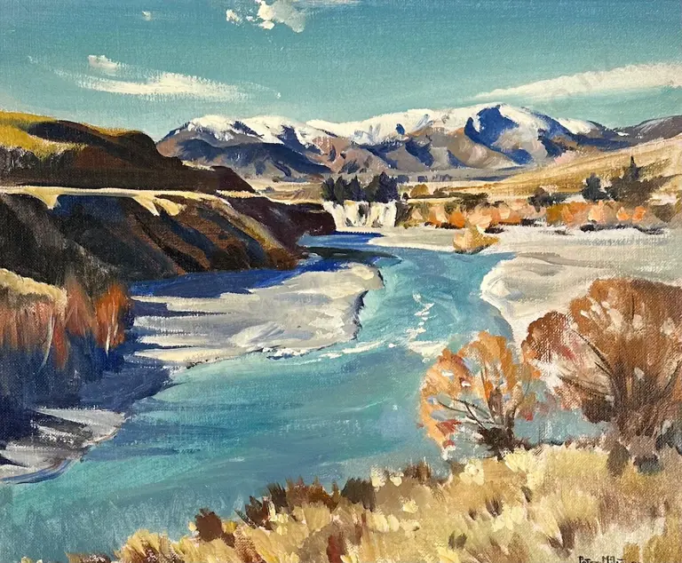 Peter McIntyre - Shotover River, oil, 490x590mm