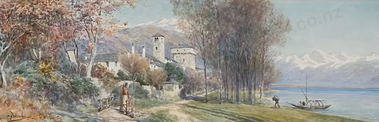 C N Worsley - Castello, Lake Maggiore, watercolour, 245x740mm