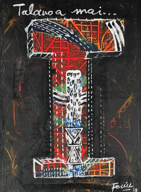 Fatu Feu'u - Talanoa Mai, 2018, acrylic and oil stick, 1015x760mm