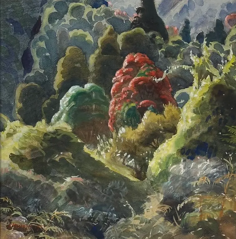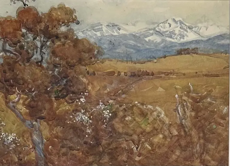 M O Stoddart - Spring near Cashmere, watercolour, 240x340mm