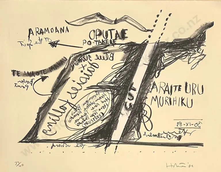 Ralph Hotere - Oputae Cut, lithograph 2/20, 610x500mm