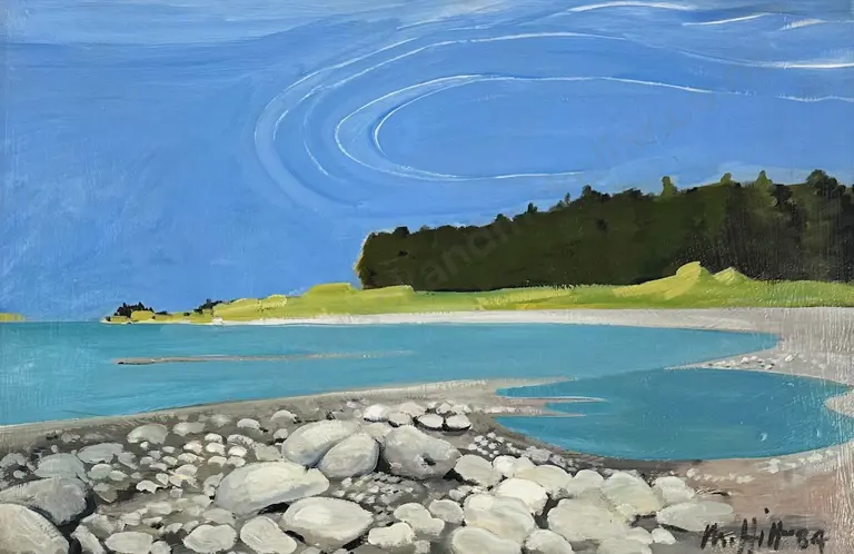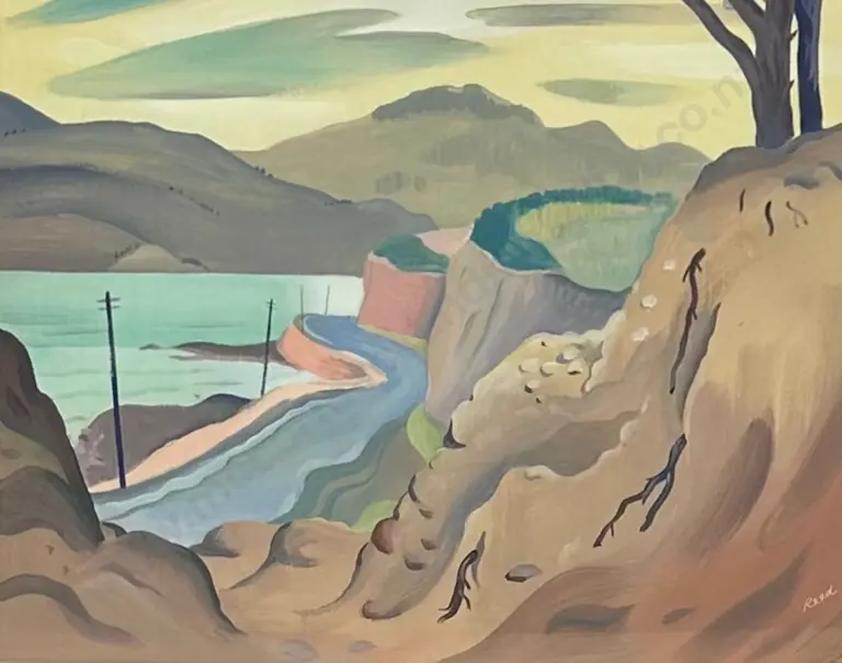Bill Reed - Otago Peninsula Road, acrylic, 295x370mm