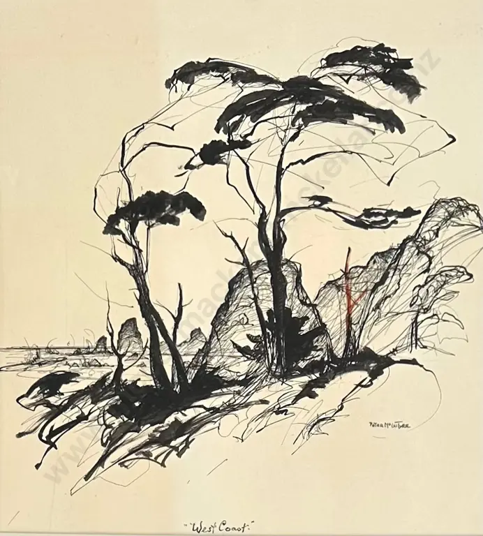 Peter McIntyre - West Coast, pen and ink, 370x350mm