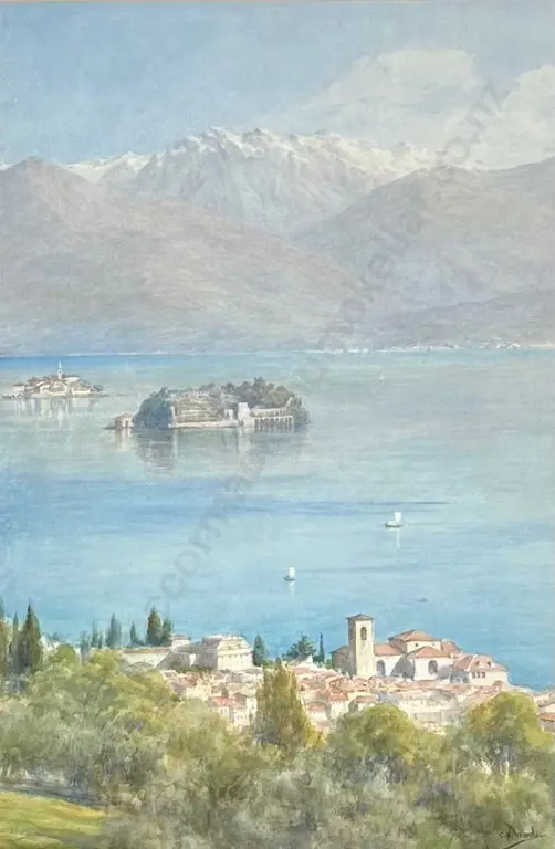 C N Worsley -  Isola Bella and Isola Pescatore, watercolour, 740x490mm