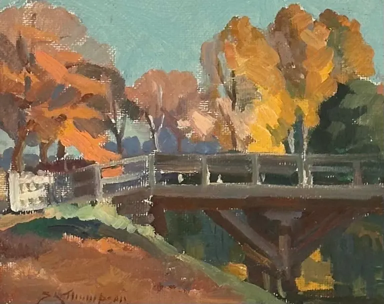 S L Thompson - Autumn Bridge Scene, oil, 210x250mm