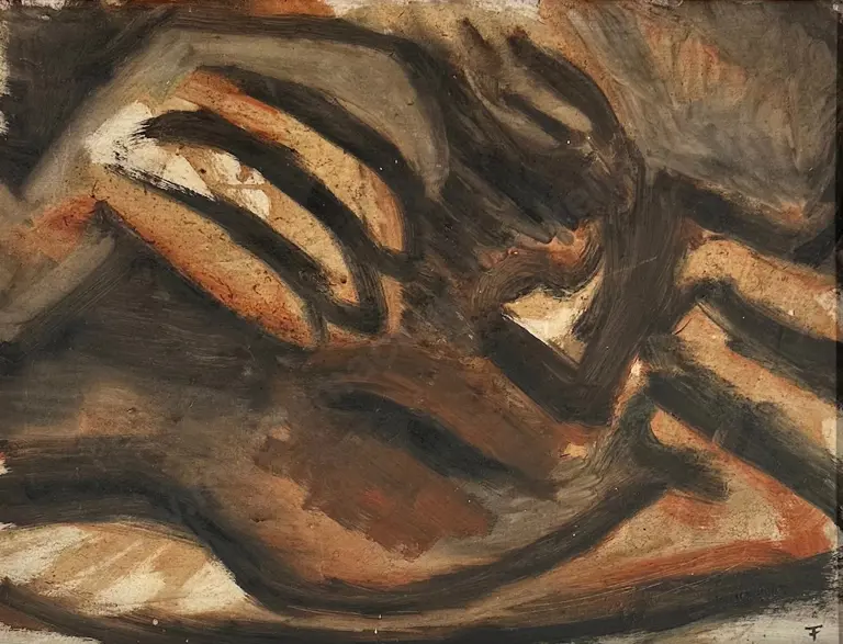 Tony Fomison - Face Crossing the Earth, oil on board, 460x610mm