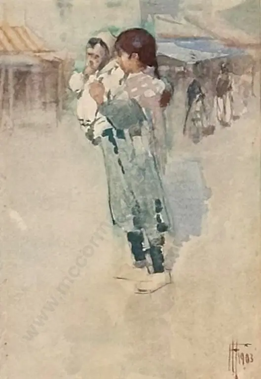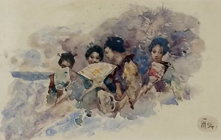 Frances Hodgkins - Japanese Women with Fans, 1894, watercolour, 100x150mm
