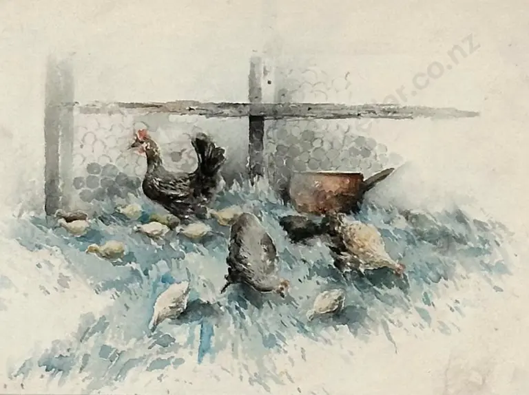 Frances Hodgkins - Hens and Chickens, watercolour, 140x190mm