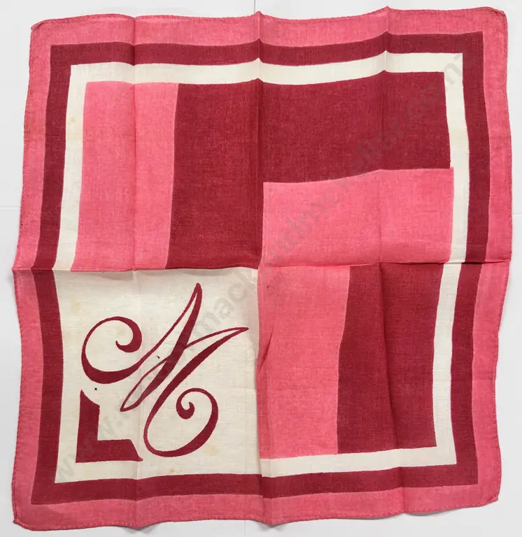 Marilyn Monroe original Pink Handkerchief monogrammed with the letter M. Certificate of Authenticity 1/5/2004,