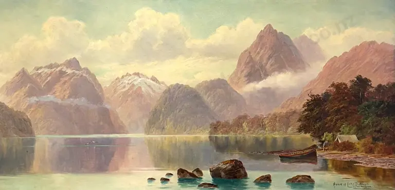 L W Wilson - Head of Lake Te Anau, oil, 500x1000mm