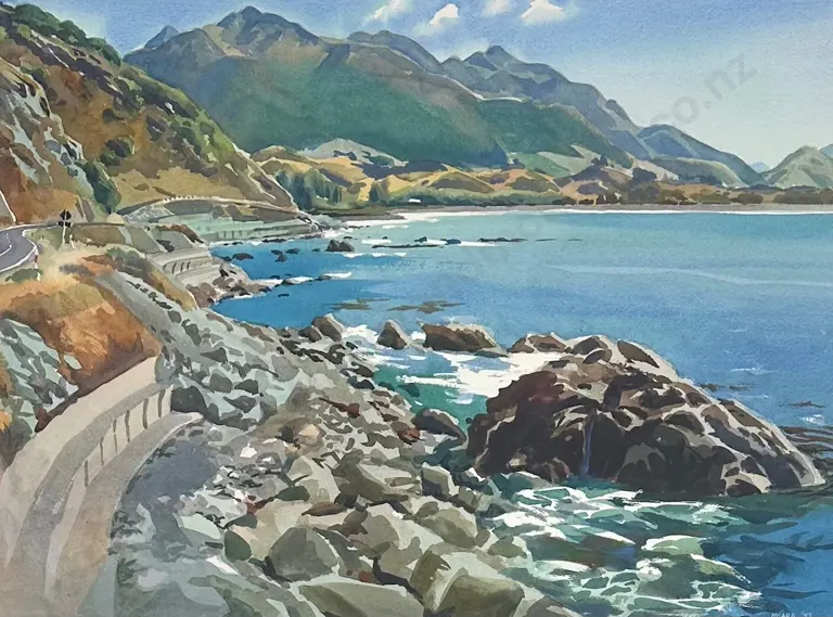 Don McAra  -  Autumn Morning, Kaikoura Coast,1998, watercolour, 515x700mm