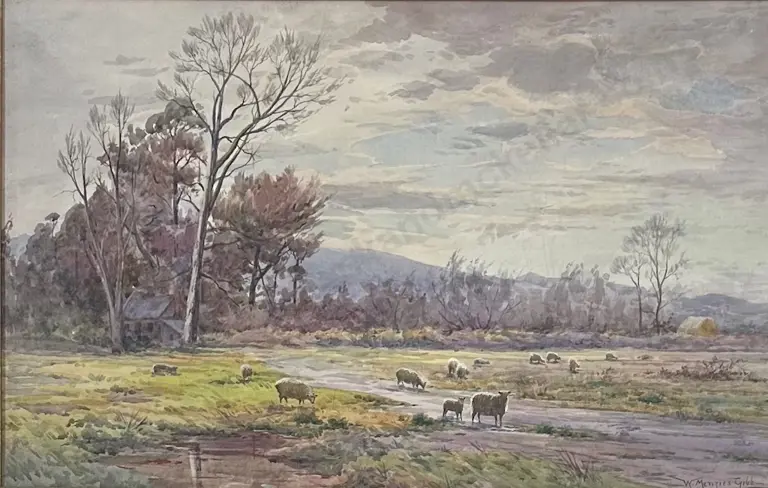 W Menzies Gibb – River Flat, watercolour, 310x500mm