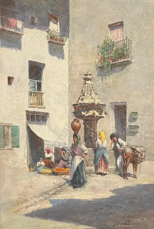 C N Worsley - Spanish Market, watercolour, 490x330mm