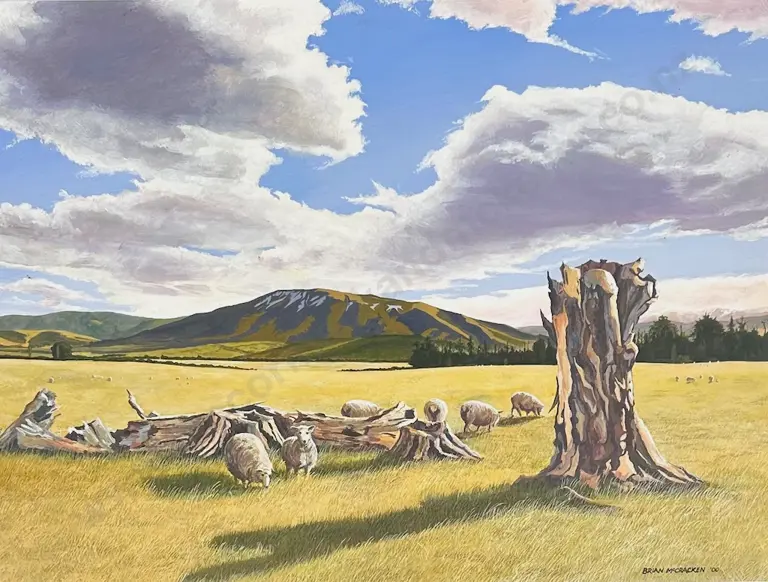 Brian McCracken - Nor'west Afternoon, Towards Mt Thomas, Nth Canterbury, 2000, acrylic, 585x435mm