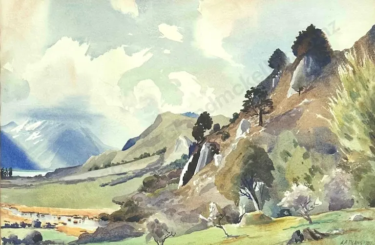 A A Deans - Lake Sumner, 1988, watercolour, 360x550mm