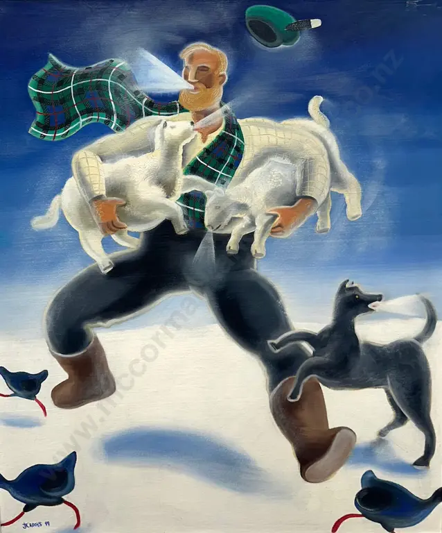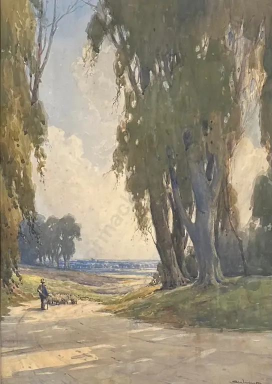 S Warburton - Herding Sheep 1922, watercolour, 680x470mm Estimate: $750 - $1,500