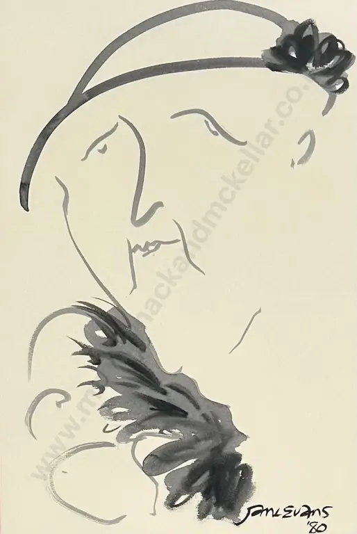 Jane Evans - Wedding Guest, 1980, ink wash, 540x360mm Estimate: $1,000 - $2,000