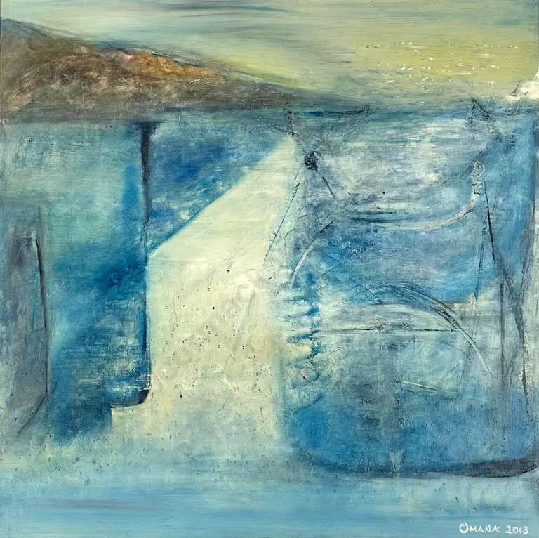 Omana - Crossing Raukawa Moana (Cook Strait), 2013, gesso, acrylic and oil, 1010x1010mm Estimate: $1,000 - $2,000