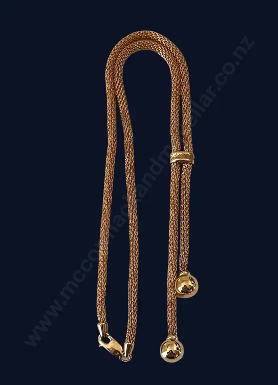 18ct Yellow Gold Cylindrical wire mesh Chain Necklace, L61cm, TW25.9gms, Valuation $10,039 Estimate: $3,500 - $5,000
