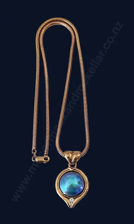 9ct Gold Blue Pearl and Diamond Pendant and Chain L40cm TW19.1gms, Valuation $1800.00 Estimate: $1,000 - $1,600