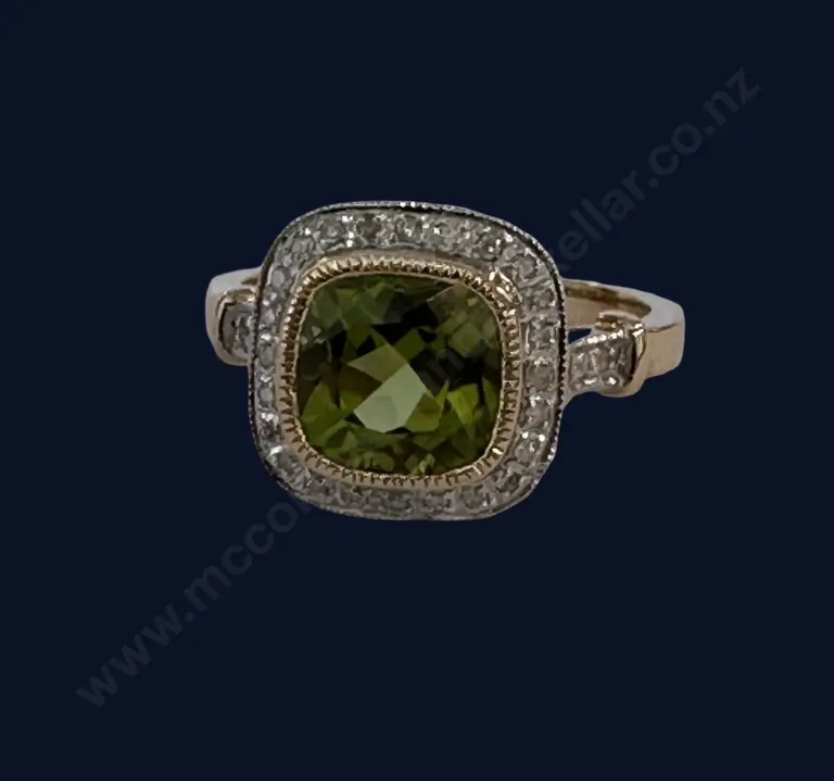 9ct Peridot Diamond Cluster Ring, 4.0ct, TW4.34gms, Valuation $3,900 Estimate: $900 - $1,500