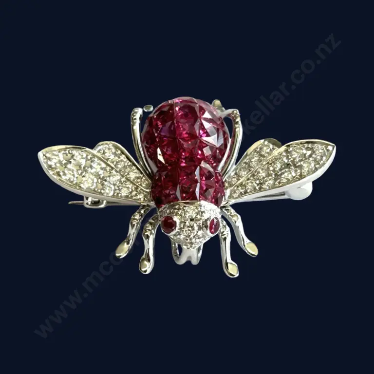 18ct Gold Ruby and Diamond Invisible Setting Bee Brooch/Pendant, TW3.98gms, Valuation $8,800 Estimate: $3,500 - $5,000