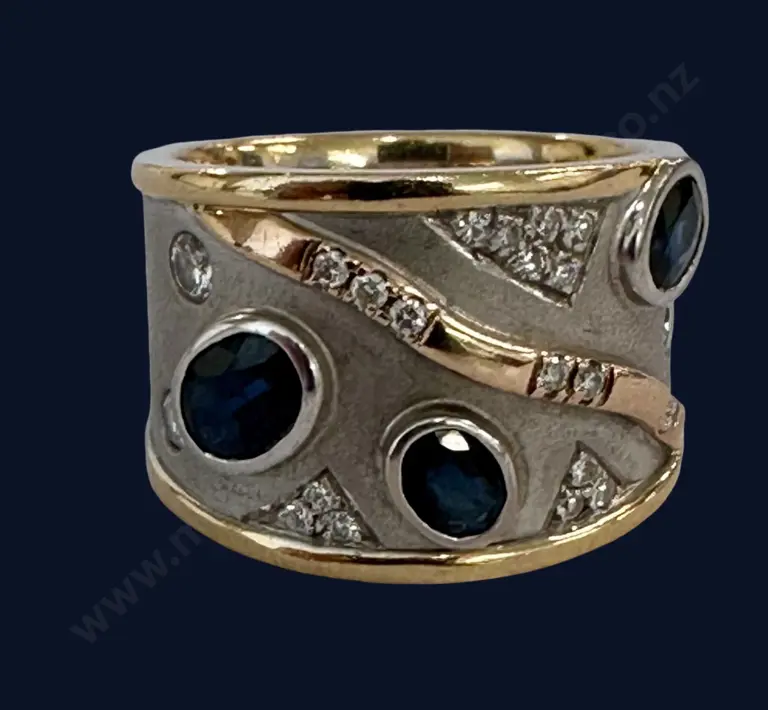 18ct White and Rose Gold Diamond and Sapphire Dress Ring, TGW2.49ct, TW29.9gms, Valuation $10,930.00 AUD Estimate: $4,000 - $6,000