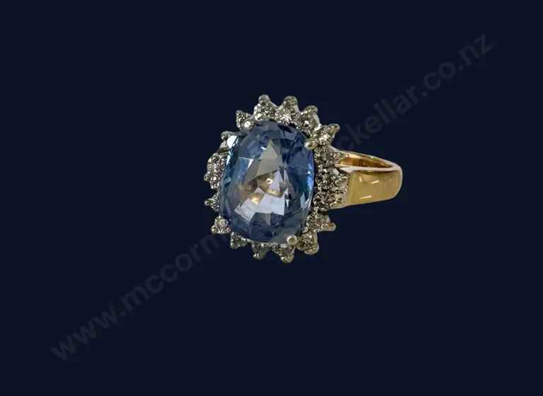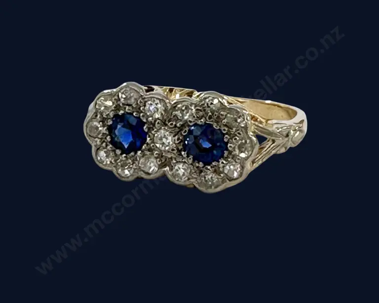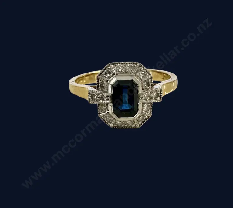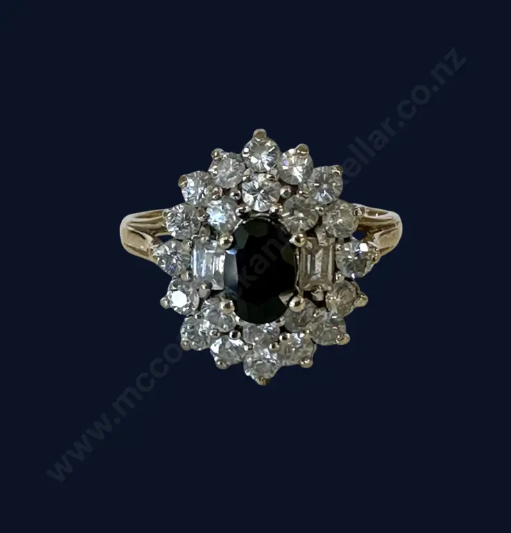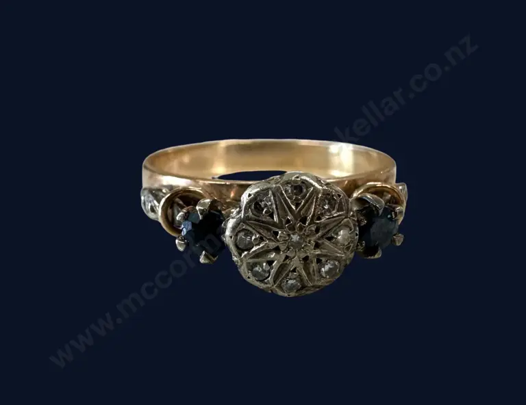18ct Yellow and White Gold Diamond and Sapphire Cluster ring, Sapphire 0.84ct, Valuation $4,969 Estimate: $1,250 - $2,000