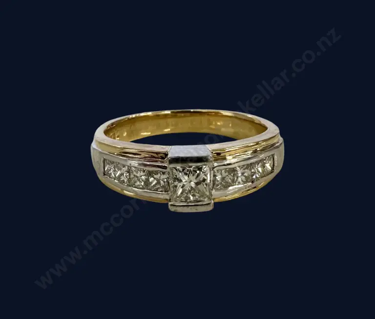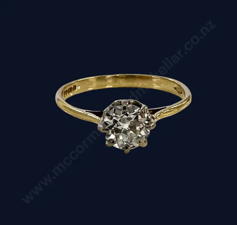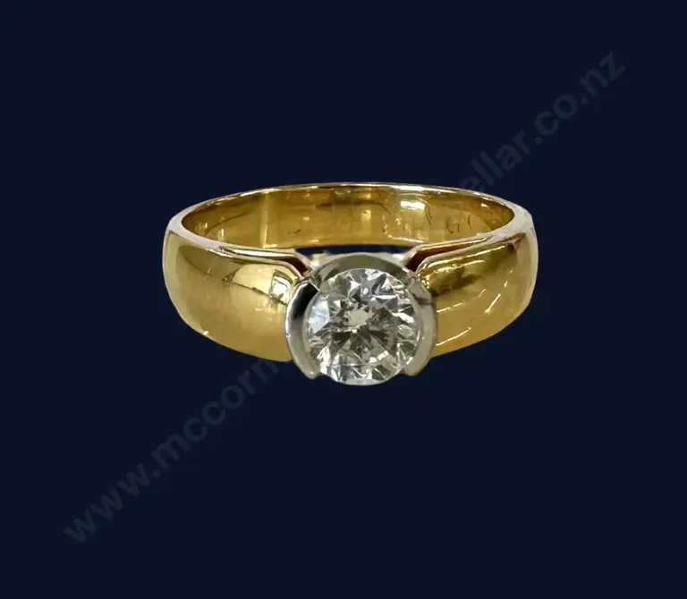 18ct Yellow and White Gold Diamond Solitaire Ring, TW7.5gms, TDW1.02ct Valuation $2150.00 Estimate: $750 - $1,400