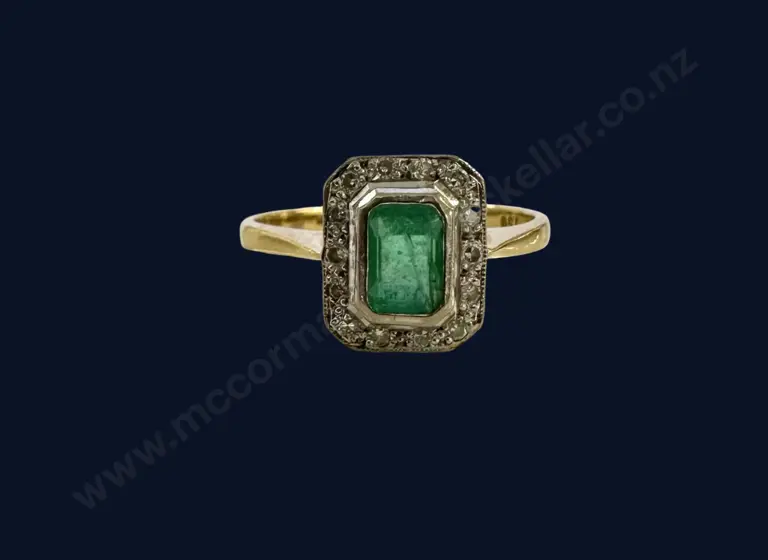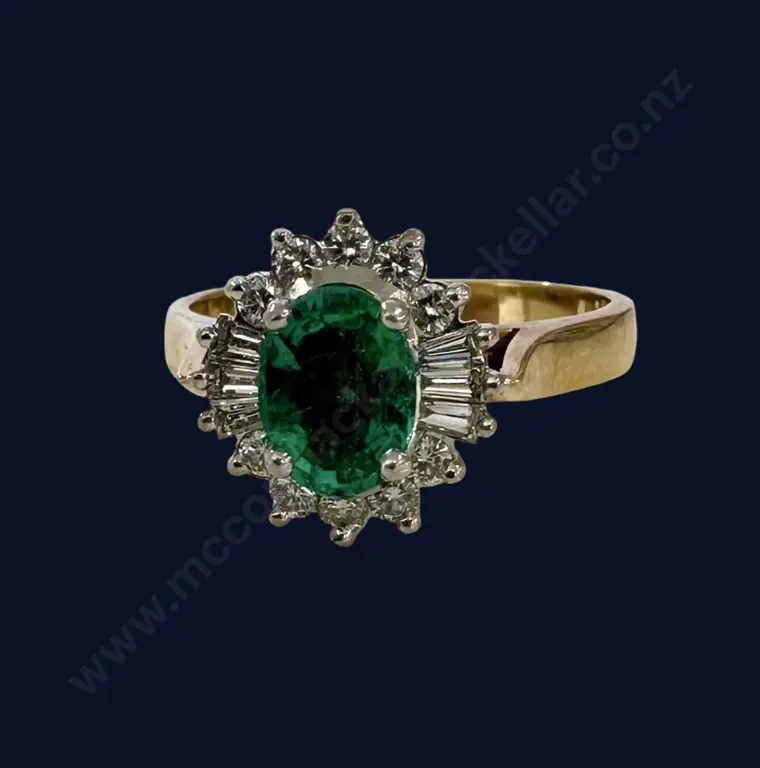 18ct Gold Diamond and Emerald Set Cluster Ring, Emerald 0.87ct, TW5.3gms, Valuation $3500.00 Estimate: $750 - $1,500