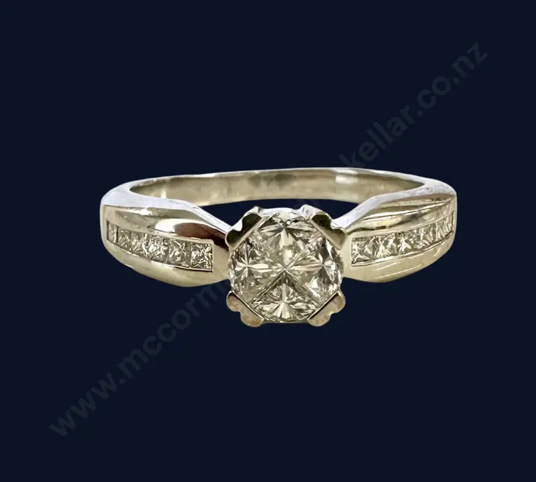18ct White Gold Diamond Cluster Ring, TW5.7gms, Valuation $1,600 Estimate: $600 - $1,200