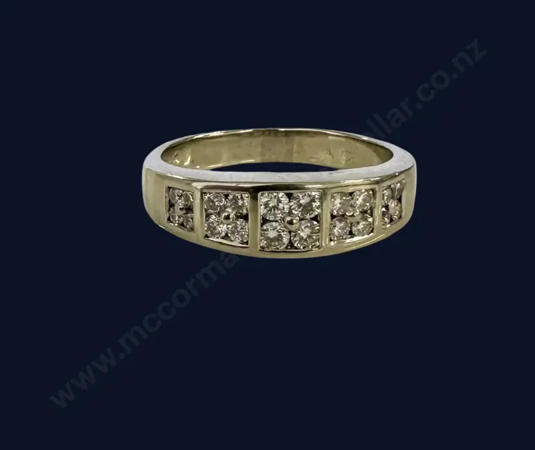 18ct Yellow Gold Diamond Set Band, TW3.41gms, Valuation $3,450 Estimate: $900 - $1,500