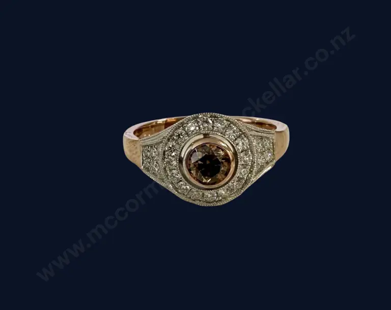 9ct Rose and White Gold Diamond Set Halo Cluster Ring, TW4.0gms, Valuation $1429.00 Estimate: $300 - $600