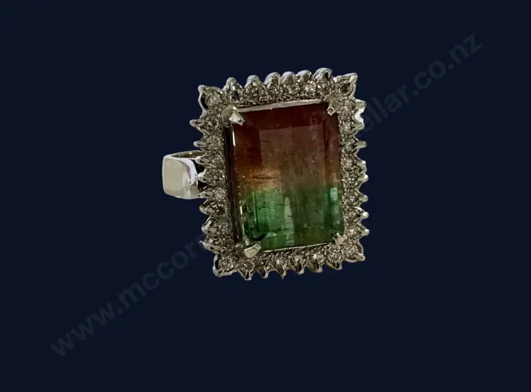 18ct Watermelon Tourmaline and Diamond Cluster Ring, Tourmaline 6.5ct, Valuation $14,000 Estimate: $4,000 - $6,000