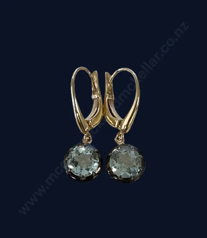 18ct Gold Round Shape Aquamarine Black Rhodium Plate Drop Earrings,1.88ct, TW3.49gms, Valuation $3,800 Estimate: $1,000 - $2,000