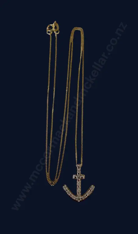 9ct Diamond Anchor Pendant on 18ct Gold Chain -TW1.1gms chain, TW1.3gms pendant,L44cm Estimate: $250 - $500