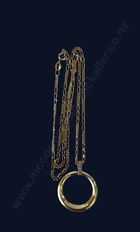 9ct Gold Figaro Chain with Gold Circle Pendant with Diamond Bale, TW7.6gms, L48cm Estimate: $350 - $600