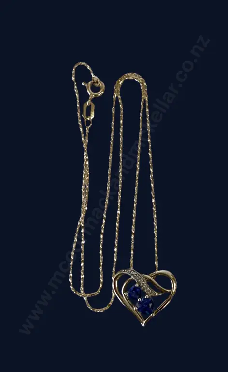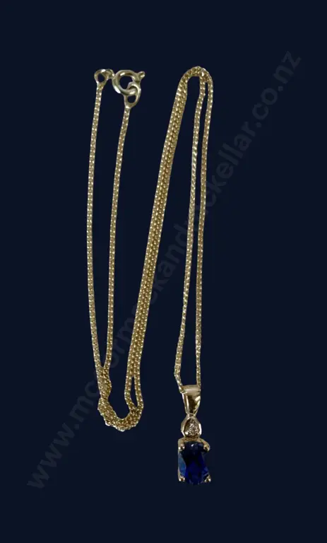 9ct Sapphire and Diamond Pendant on 9ct Chain TW2.2gms L39cm Estimate: $150 - $250