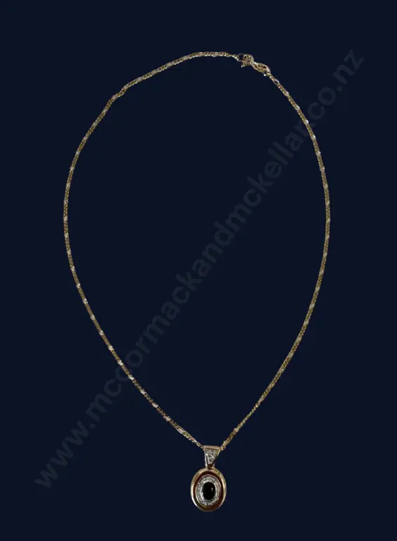9ct Yellow and White Gold Sapphire and Diamond Oval Drop Cluster Pendant on Chain L41cm TW6.7gms, Valuation $950.00 Estimate: $300 - $600