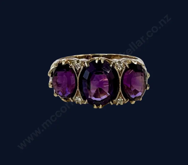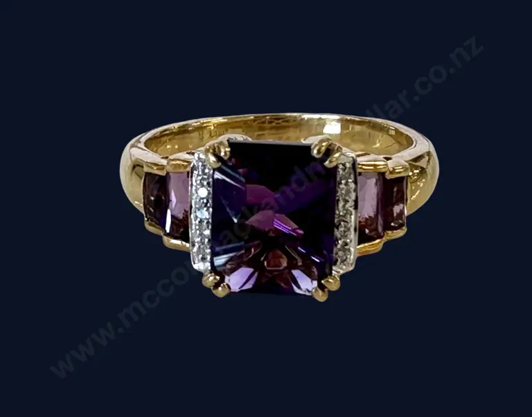 9ct Yellow Gold Amethyst and Diamond Ring, TW7.7gms Estimate: $400 - $700