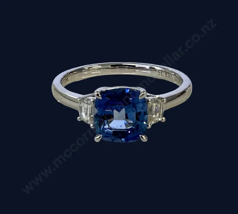 18ct White Gold Ring, 1.83ct Sapphire, 2 diamonds, 0.261ct, TW 3.38gms, valuation $11000 Estimate: $3,500 - $5,000
