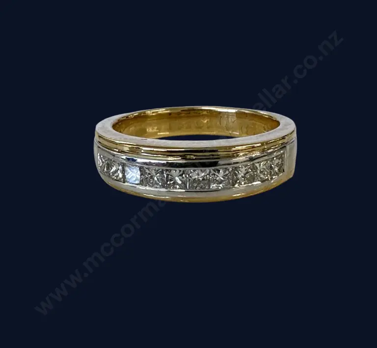 18ct Yellow and White Gold Diamond Set Band, TDW0.73ct, TW8.7gms, Valuation $2150.00 Estimate: $800 - $1,400