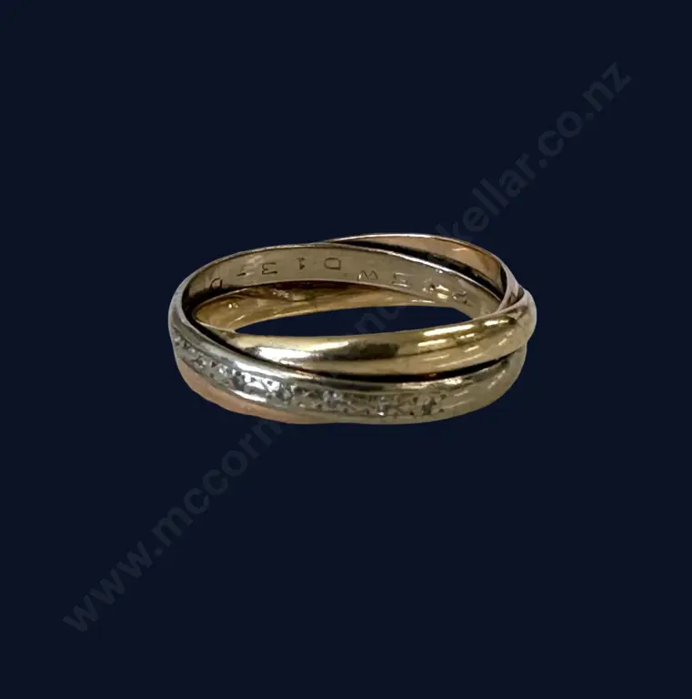 9ct Rose, White and Yellow Twisted Diamond Ring, TW3.4gms Estimate: $175 - $350
