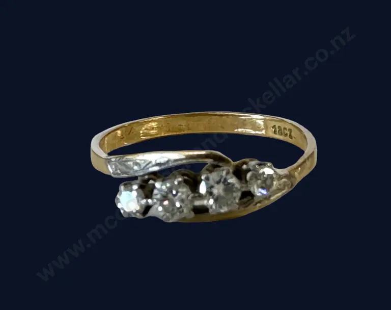 18ct Gold Four Diamond Ring, TW2.8gms Estimate: $300 - $600