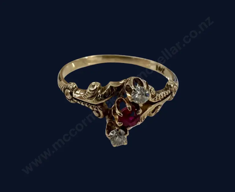 14ct Gold Diamond and Ruby Filigree Ring, TW1.9gms Estimate: $150 - $300