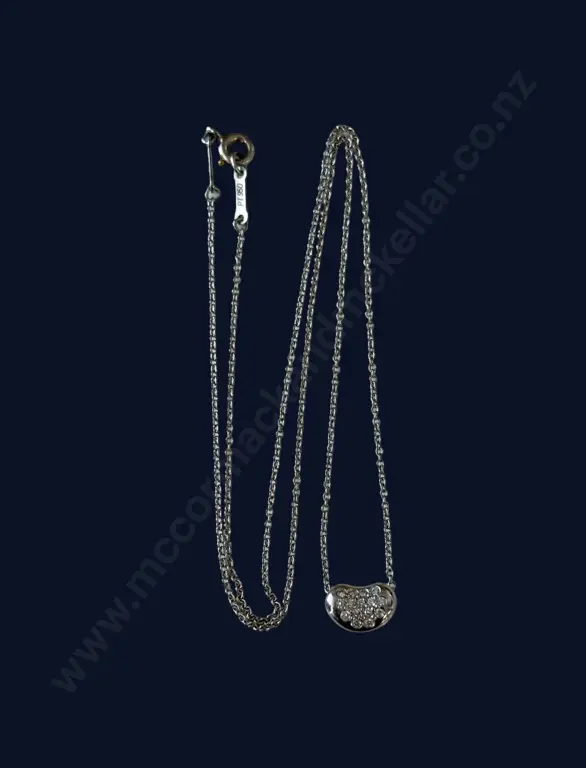 Tiffany & Co. Platinum and Diamond Bean Necklace, L38cm, TW4.1gms Estimate: $300 - $600
