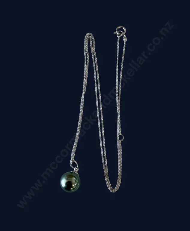 18ct Gold Saltwater Tahitian Pearl on 18ct White Gold Chain, TW2.6gms, Length 45cm, valuation $3,150 Estimate: $800 - $1,500